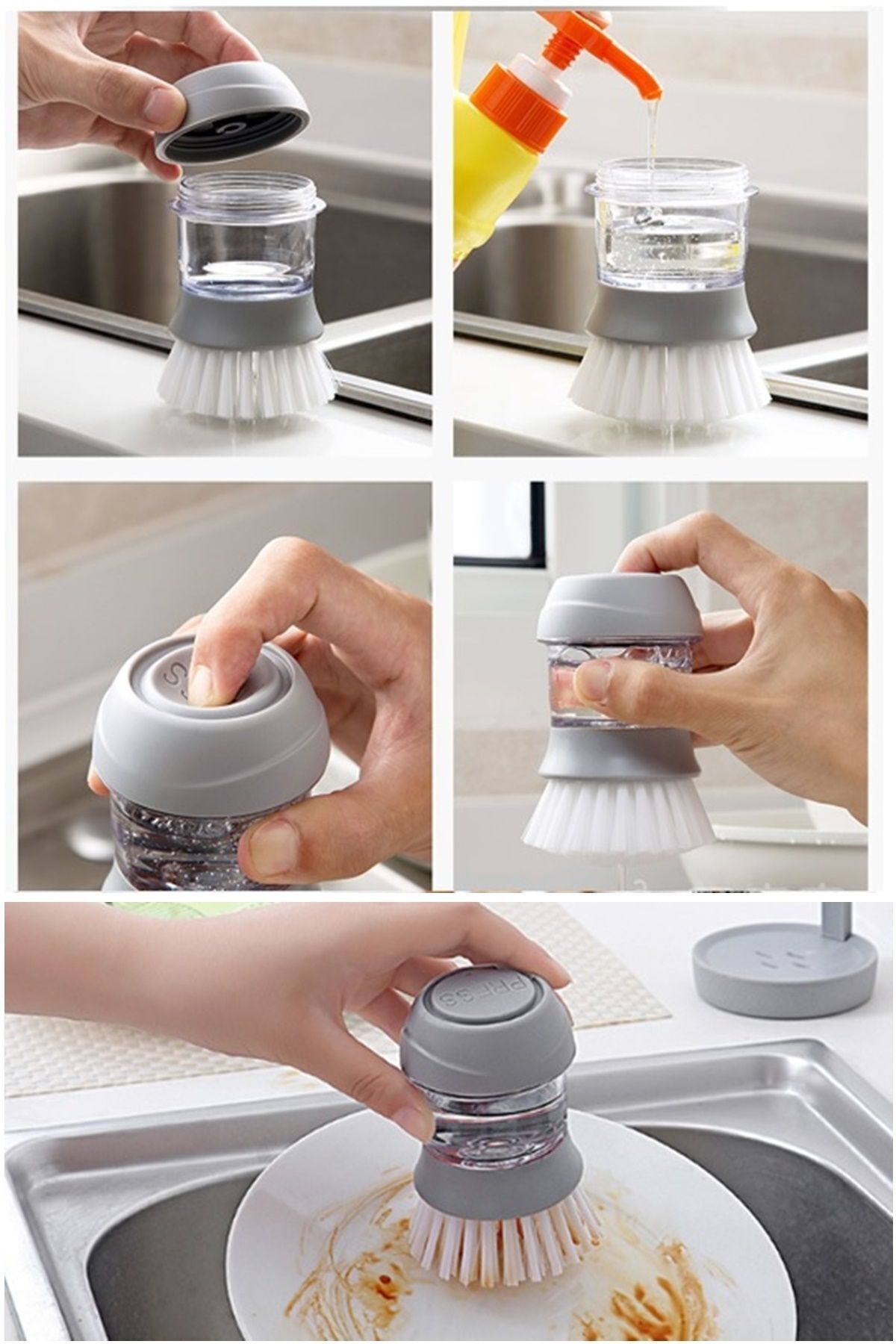 Sıvı Deterjan Hazneli Standlı Sihirli Fırça ile ekstra sünger, ekstra deterjan, ekstra zaman harcamazsın. Bastır, temizle, bırak. Kolay, hızlı ve hijyenik temizlik isteyenlerin favorisi!